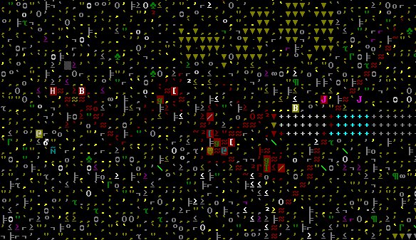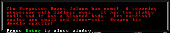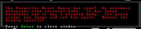 The dwarf was where the jabberer is now, fighting it. It then got thrown past the position shown to the edge of the screen. Goddamn that thing is scary. Amazingly, the dwarf took no damage, I presume because the edge of the map stopped the fall without colliding with something.